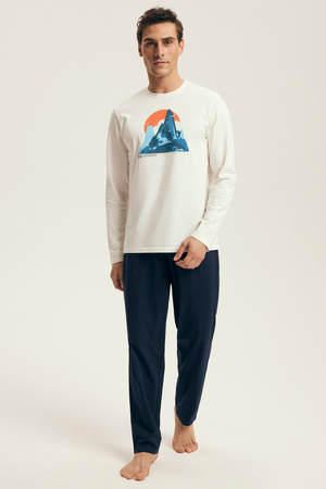 Henderson Loji men's cotton pajamas white-navy blue 43475
